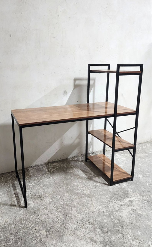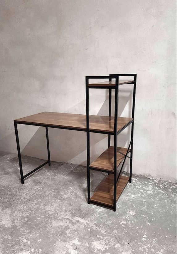 این میز با طراحی ساده و کاربردی، انتخابی ایدهآل برای خانه، دفتر کار و فضای مطالعه است. ترکیب چوب و فلز، ظاهری مدرن و مقاوم به محصول بخشیده و قفسههای جانبی، فضایی مناسب برای نگهداری کتابها، لوازم دکوری یا وسایل اداری فراهم میکند.