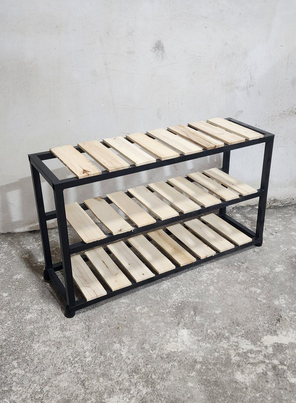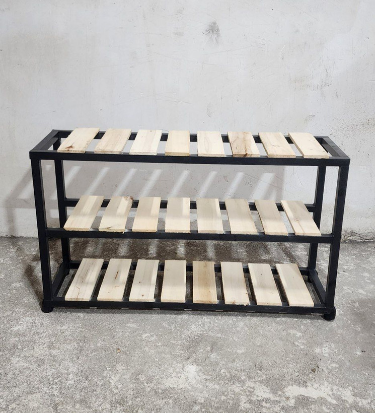 جاکفشی فلزی سهطبقه با رویه چوب طبیعی