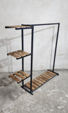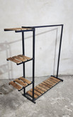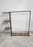 این استند با ترکیب فلز مشکی و چوب طبیعی، جلوهای گرم و مدرن به فضا میدهد و علاوه بر آویز لباس، دارای چند طبقه کاربردی برای قرار دادن کفش، کیف، اکسسوری یا دکوری میباشد.